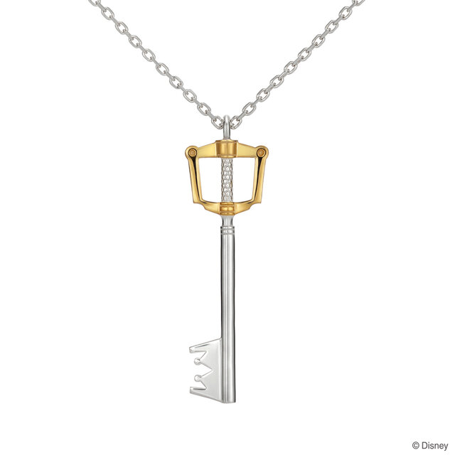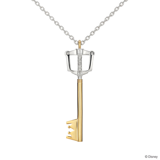 心の強い者だけが扱える伝説の剣「キーブレード」。開かれようとしていた闇の扉を閉じるために、王様が闇の世界で手に入れたキーブレードのネックレス。65,000円(K18ホワイト×イエローゴールド)、32,000円(シルバー×K10イエローゴールド)、15,000円(シルバー)。