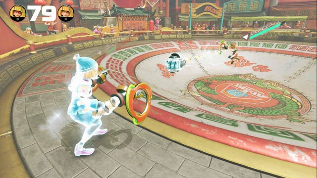 外周での牽制しあいが多くなりがちですが、必殺ラッシュが溜まったら不利を覚悟でラーメンボウルの底へ行き、アームをぶつけに行ったほうが良いケースも多いです。というのも、このステージは広く相手にどうしても近寄りづらいので、ダメージレースで負けてしまったあとガン逃げされる危険性があるからです。