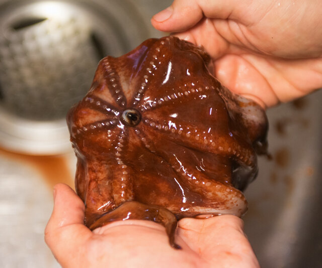 本当にタコなの?と疑いたくなるところですが、ひっくり返してみると一目瞭然。たしかに脚は8本だし、吸盤もあります。
