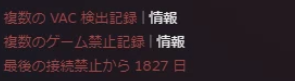 自身の財産であるインベントリ/ライブラリだけでなく、チーターの踏み台にされてしまうと「VACBAN」という最上級のペナルティをプロフィール画面に付与されてしまう可能性も秘めています。VACBANは“チートをしたことがある”という明確な証であり、実質上「あなたはチーターです。公にしておくので、あなたは他人ともうきっとマルチプレイゲームが遊べません」というお墨付き。ありとあらゆるゲームでマルチプレイができなくなるでしょう(画像は以前詐欺メッセージを送ってきたアカウントより)。