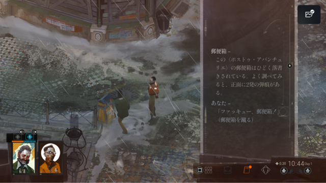 そうして“思考”を変えてマッチョ野郎が塞いでいた道の先へ進み、周辺の労働者を取りまとめるリーダーに出会いました。「港湾労働者が殺したという遺体」「弾痕が残るポスト」「デモ中の労働者たち」……これまで見つけた手がかりについて、彼から核心的な答えを得ることはできるのでしょうか?この先の展開は、ぜひ自分の目で確かめてみてください。