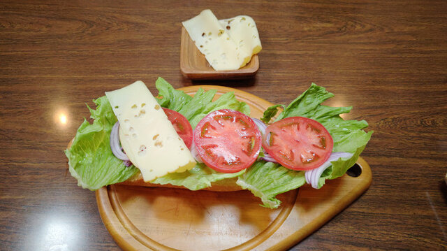 サンドイッチNGシーン。この後上のパンは消滅しました。(成功版も同じパンなのでご安心ください、私が美味しく食べました)