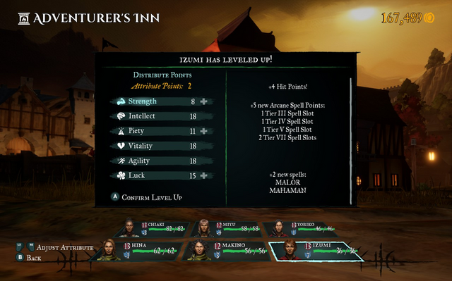 また、本作では宿屋に泊まってレベルアップしたときの能力値の変化もデフォルトでは「ボーナスポイントを割り振る」形に変更されています。今までのシリーズだとレベルアップ時にランダムで能力値が変化するため、時には能力値が減ってしまう事がありましたが、本作ではその心配は皆無です。またキャラクターの長所を伸ばしやすくなったという点でも、この変更は便利になったと言えるでしょう。