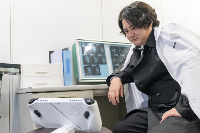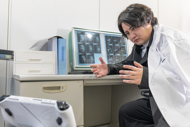 受付で待たされること数十分、案内された診察室には黒コートの上に白衣を羽織った奇妙なラージサイズの医師が現れる。彼は自分のことを「ゲーミングドクター響」だと名乗った。