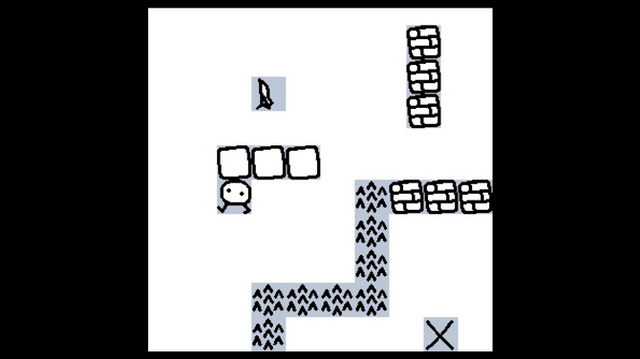 本作は、Hempuli氏が2024年に手掛けた倉庫番パズル6作目です。過去作同様、本作の序盤は一般的な倉庫番パズルから始まり、“隣接したブロックとまとめて押せるブロック”や“一度通ると塞がってしまうマス”などが登場します。
