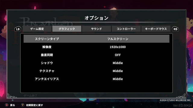 その他設定については、グラフィック、サウンドともにオーソドックスな項目が並び、言語設定についても当然といえば当然ですが、日本語にバッチリ対応済みです。