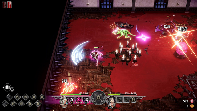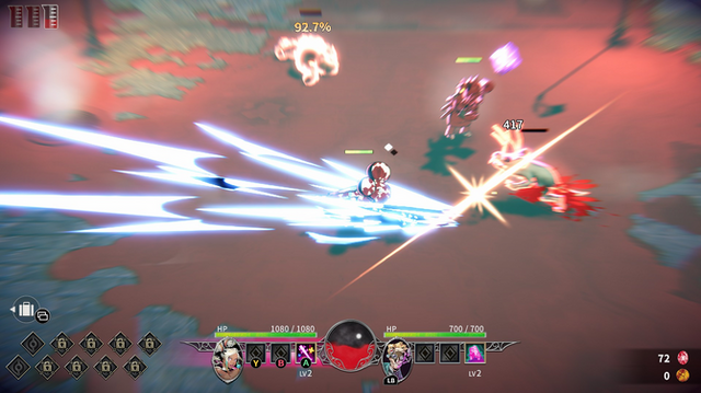 現状だと、動き回る敵味方と血溜まりでごちゃつきやすい画面内で、自キャラのモーションを確認してから操作入力するという、爽快な見た目だけれど、ややまごつく操作感と言いましょうか……。