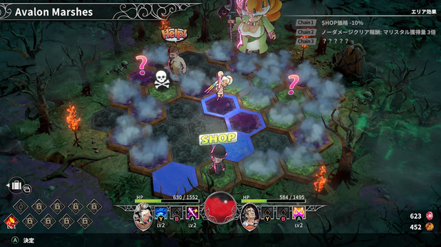 戦闘マップは一部を除いて基本は長方形に閉じた構造となっており、そこへ敵が時間差で出現したり、トラップが仕掛けてあったり、敵味方にダメージを与えるギミックが用意されていたりとバラエティ豊か。
