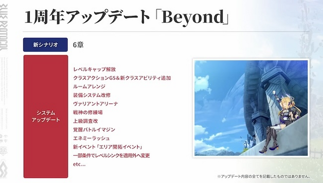 1周年アップデート「Beyond」では、レベルキャップ解放、クラスアクションG5、新クラスアビリティの追加、装備システム改修など多くのシステムアップデートが行われることが明らかになりました。なお、アップデートは4ヶ月を1クールとしてゲーム改修を行い、今回のアップデートは6月~9月にかけて行われるとしています。アップデートの詳細は、アップデート日に公式サイトで公開されます。