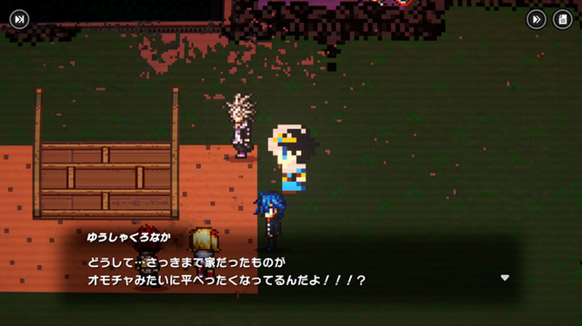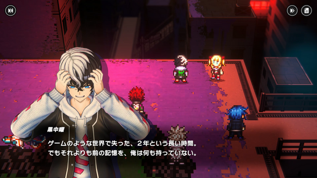 ゲームを開始すると、なんとレトロなRPGがスタート。ファンタジーさながらの世界でめがみ像に“お使いクエスト”を頼まれます。何もかもが違和感の世界で生きる主人公「くろなか」が違和感を覚えるところから物語が始まります。明らかに「作られた世界」ですが、これは劇中劇ではなく、主人公である「黒中曜」が“現実だと思わされていたハリボテ”でした。