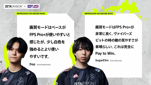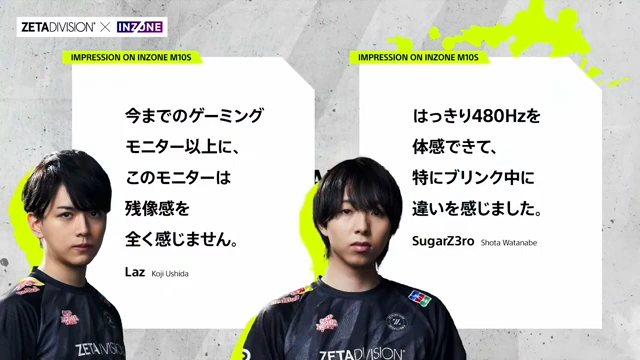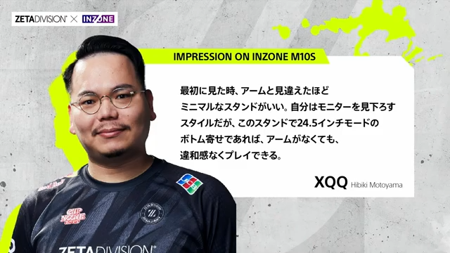 セッションでは、INZONEの新作FPS用ゲーミングモニター「INZONE M10S」の詳細や、ZETA DIVISIONの選手が同製品を実際に使用した際の感想が取り上げられ、k4senさんの実地プレイレポートも行われました。