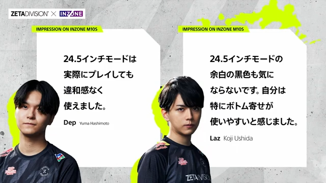 Laz選手:24.5インチモードの余白の黒色も気にならないです。自分は特にボトム寄せが使いやすいと感じました。