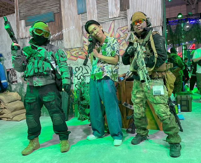まずはフォトスポットからご紹介。こちらはゴリゴリに完全武装したスタッフの方と一緒に、モデルガンを構えて写真を撮れるスポットになっています。