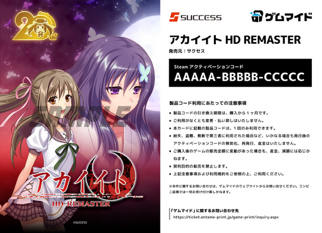 Steamキー付きブロマイド「ゲムマイド」グランドオープン販売タイトル紹介①Steamキー付きブロマイド「ゲムマイド」グランドオープン販売タイトル紹介②■『アカイイトHD REMASTER』(パブリッシャー:サクセス)