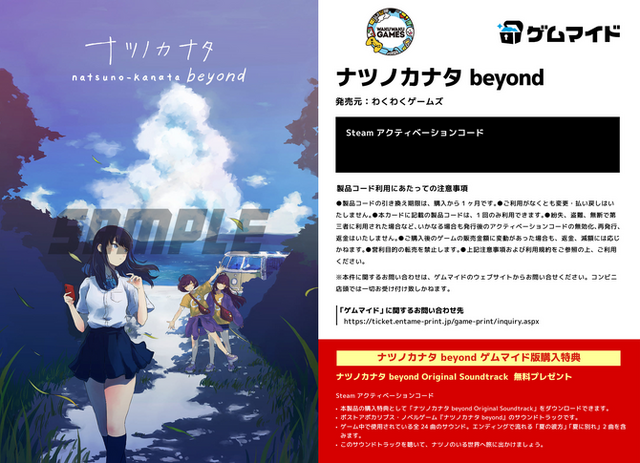 2021年に早期アクセスで配信され、2022年に正式リリースされたSteamユーザーレビュー“圧倒的好評”の『ナツノカナタ』をベースに、新たなコンテンツの追加などを行った完全版となるエディション。古いPCから偶然繋がった「パンデミックによって崩壊した世界」を生きる少女・ナツノと通話しながら、世界の謎へと迫っていくストーリーを体験します。また、本作は「ゲムマイド」券面バリエーションを3種展開。サウンドトラックも合わせてダウンロードできます。