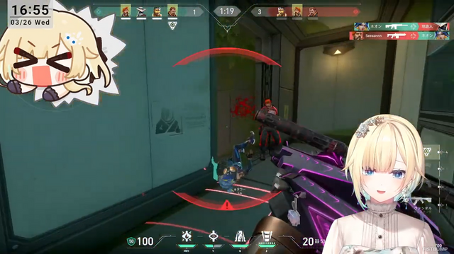 そんな清楚担当が大絶叫することとなったのは、3月26日(水)に行った『VALORANT』のソロランクの配信。デスマッチでしっかりとアップを行った後アイスボックスで勝利をあげ、ルンルンでキューを入れた藍沢エマさんでしたが、その後にマッチングした2戦目のフラクチャーで事件は起きました。