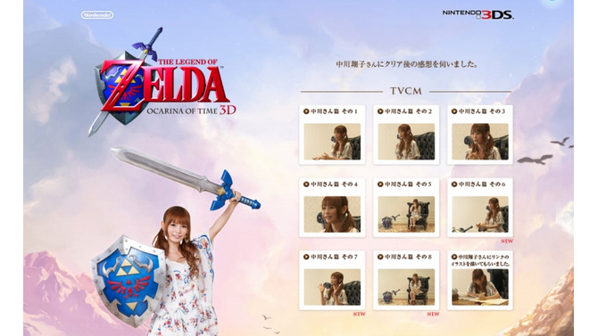 8月4日より、「しょこたん」こと中川翔子さんが出演している『ゼルダの伝説 時のオカリナ3D』の新TVCMですが、本日新たに3本のTVCMが追加されました。