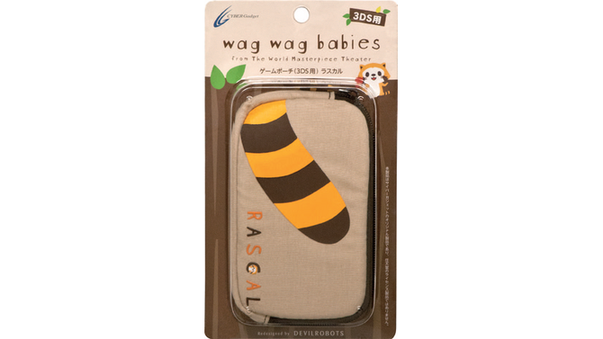 「wag wag babies ゲームポーチ」は、人気テレビアニメ「世界名作劇場」の人気キャラクターであるラスカル、アメディオ、バロン、パトラッシュの4匹が並んだデザインと、ラスカルの尻尾が大きく描かれたデザインの2種類販売されます。両方ともファスナーは、かわいらしいラスカルの尻尾の形をしています。