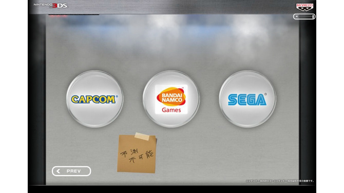 このクロスオーバープロジェクトは、カプコン、セガ、バンダイナムコゲームス、ゲームメーカー三社によって制作が進められているニンテンドー3DSソフトです。ゲームタイトル、ジャンル、発売時期、一切不明。