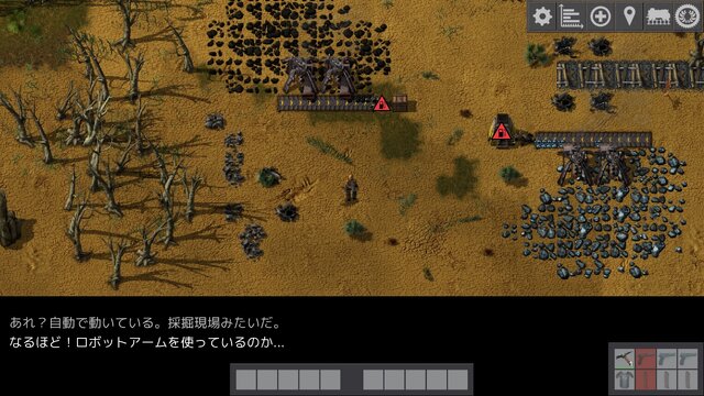 『Factorio』は、未開の惑星に不時着した主人公が母星に帰るために、その惑星の資源を採掘して工場を作り、最終的に宇宙ロケットを建造するサンドボックスゲームです。本作の体験版では、ゲーム序盤のチュートリアル部分がプレイ可能で、いくつかのミッションを通じてゲームシステムが学べる内容となっています。
