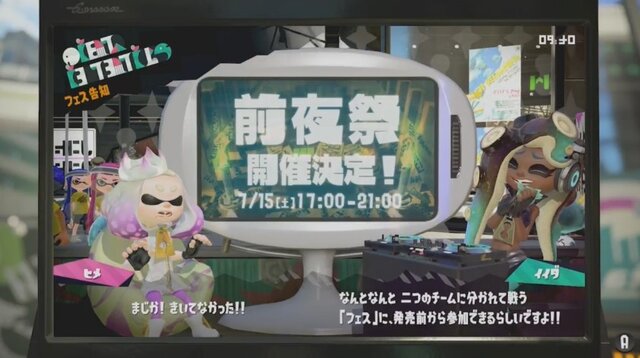 7月6日に実施した「スプラトゥーン2 Direct」にて、ニンテンドースイッチソフト『スプラトゥーン2』の発売前に「前夜祭」を開催すると明かされました。