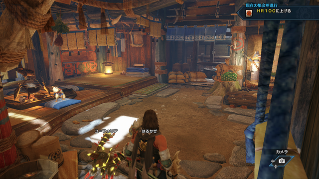 リアルの話ではありません。ハンターの皆さんはもちろんご存知だとは思いますが、カムラの里には主人公の自宅があり、中ではアイテムBOXによる装備変更やアイルーのルームサービスづてにオトモ広場関連のサービスを受けることができます。しかし、これらの機能は集会所準備エリアでも利用できるため、「最近は集会所と準備エリアの往復しかしてないなぁ」という方、決して少なくはないと思います。