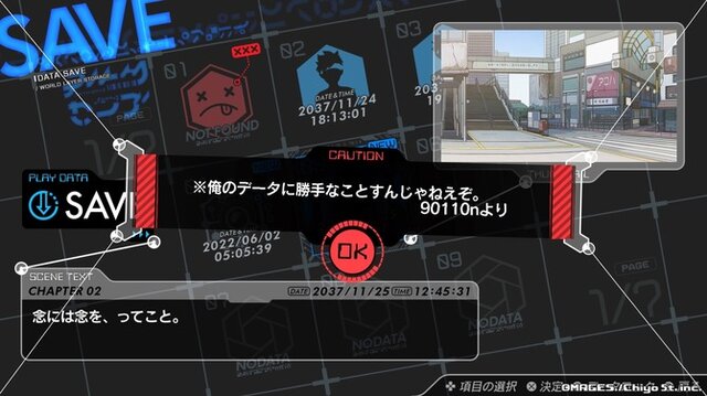 『サイバーパンク2077』や『ANUBIS ZONE OF THE ENDERS』のように、コックピットやサイバーノーツのインターフェースをゲーム内UIとしているゲームは多くありますが、アドベンチャーゲームという枠組みで、このような挑戦を見せたタイトルは多くないのではないでしょうか?