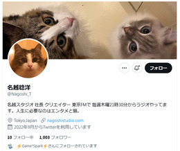 同アカウントでは猫ちゃんの画像や動画、エンタメについて感じたことなどを呟くとしており、名越稔洋氏のパーソナルな部分を知ることができるかもしれません。今後の活動についても興味がある方はフォローしておきましょう。