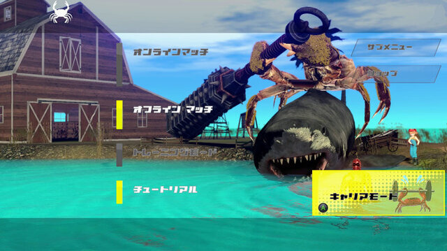 カニと共に成長し頂点を目指そう。様々なスキル・ブキを獲得し、ステータスアップをしながらキャリアを進めることができる。「公式戦」でランキングを駆け上がるもよし、トラクターやモンスターまで相手にする「興行」や正義のために悪いカニを成敗する「イベントバトル」で注目を集めるもよし! 育成が完了したカニは、次回のプレイにスキルを継承できるだけではなく、オンライン対戦で使用可能になる。