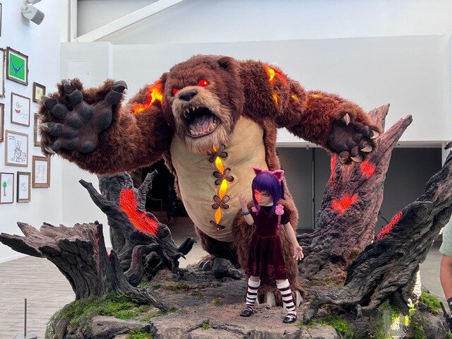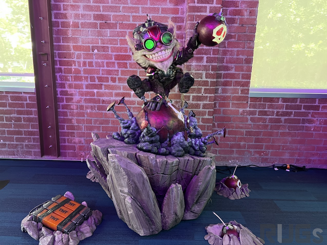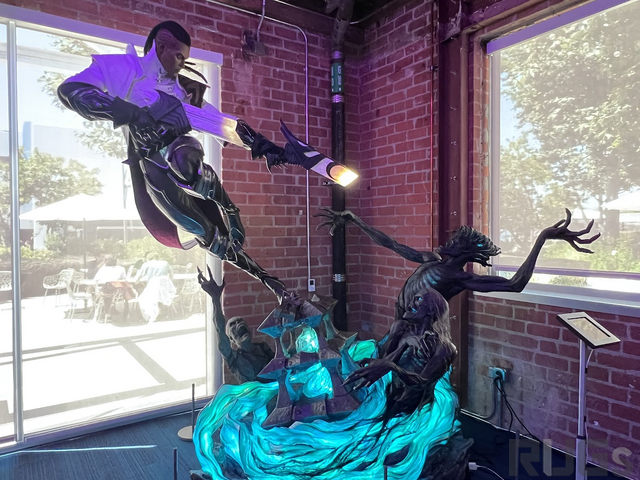 エントランスを抜けると、『LoL』に登場するレジェンド「アニー」とその相棒である「ティバーズ」のスタチューがお出迎えしてくれます。制作したのは映画「プレデター」や「エイリアン」シリーズにも関わるSFXアーティスト、スティーブ・ワン氏とのこと。