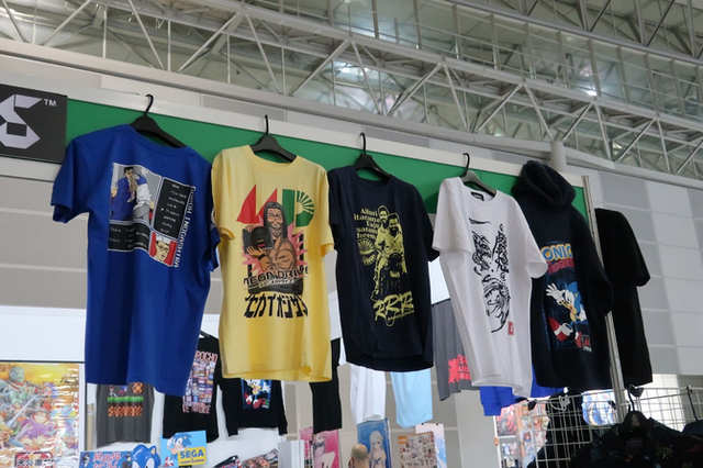 まず筆者の目に入ったのは「COSPA inc.」。各種ゲームタイトルやメーカーのグッズはもちろん、最近人気を博した「ぼっち・ざ・ろっく!」「【推しの子】」なども並びます。まさしく全方位からオタクの心をくすぐるラインナップですね。特に“懐かしのゲーム”がピックアップされているのもツボです。『どこでもいっしょ』の「トロ」Tシャツや『ザ・キング・オブ・ファイターズ'95』のアクリルスタンドなどが並びます。