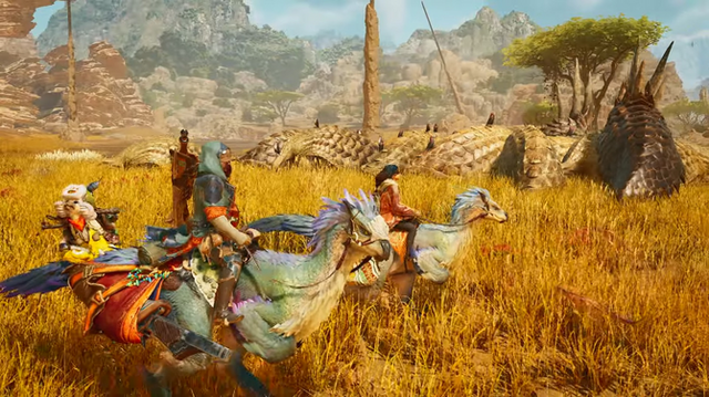 公式サイトによると、発表映像にも登場した乗用動物は「セクレト」と呼ばれており、『ライズ』における「ガルク」のような、移動補助や騎乗しながらアイテムを使用できるだけでなく、“任意で選択可能な二つ目の武器を格納する”「武器鞄」を備えており、狩猟中の武器切り替えができるとのこと。