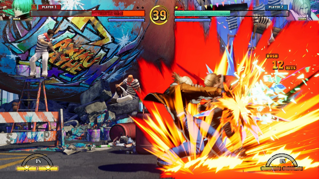 『餓狼伝説 City of the Wolves』は基本的にはオーソドックスな2D対戦格闘ゲームです。弱強パンチとキックの4ボタンで、上中下段・投げ・ダッシュなどのお馴染みの要素があり、コンボを叩きこんで相手の体力を0にすれば勝ちです。