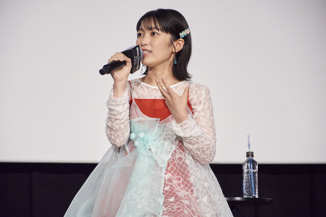 ここでトークは終了し、フォト&ムービーセッションがスタートした。さらに応援上映などの告知を挟んだのち、最後に3人から来場者と生中継の観覧者にメッセージが贈られた。黒沢は「鶴巻監督が毎話のアフレコの前に、1時間ほど世界観説明をしてくださっていました。そのときのお話から熱が入って いて、ずっと聞いていたいなーと思っていたので、今回、舞台挨拶でご一緒できてとても嬉しかったです。いろんな方々の愛 情たっぷりな作品なので、何度も何度も観ていただいて、これからも作品に関するあれこれを話し合ってもらえれば嬉しいです」と述べる。