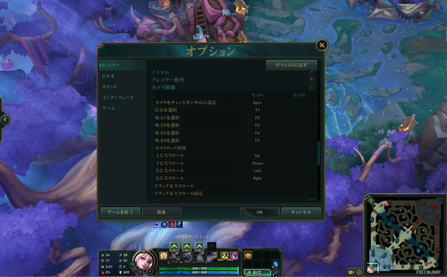 常に操作チャンピオンを画面の中央に捉える「画面固定カメラ」は操作量が減ってシンプルである一方、視界が大幅に狭くなり、遠距離の状況を把握しづらい設定でもあります。