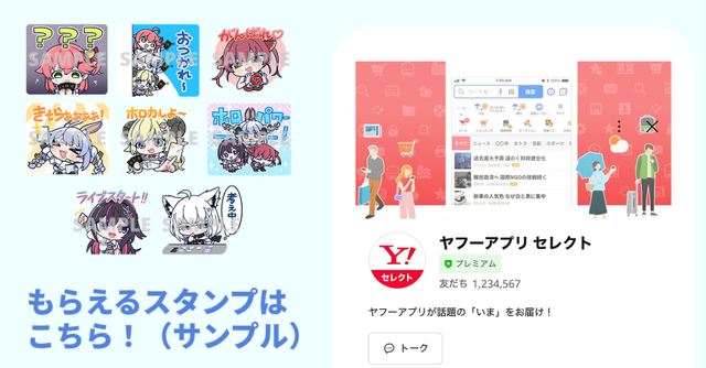 また、LINE公式アカウント「ヤフーアプリ セレクト」を友だち追加すると、限定のオリジナルLINEスタンプを取得できます。