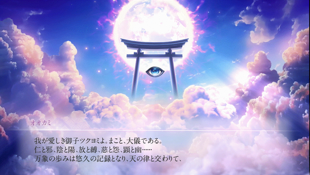 戦闘や探索を続けていくと、移動画面の左上にある「オオカミゲージ」のカウントが徐々に減少。0になるとツクヨミたちを見守る謎の神「オオカミ」が顕現し、探索時に選んだ選択時に応じた「創成札」を生み出して授けてくれます。