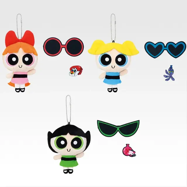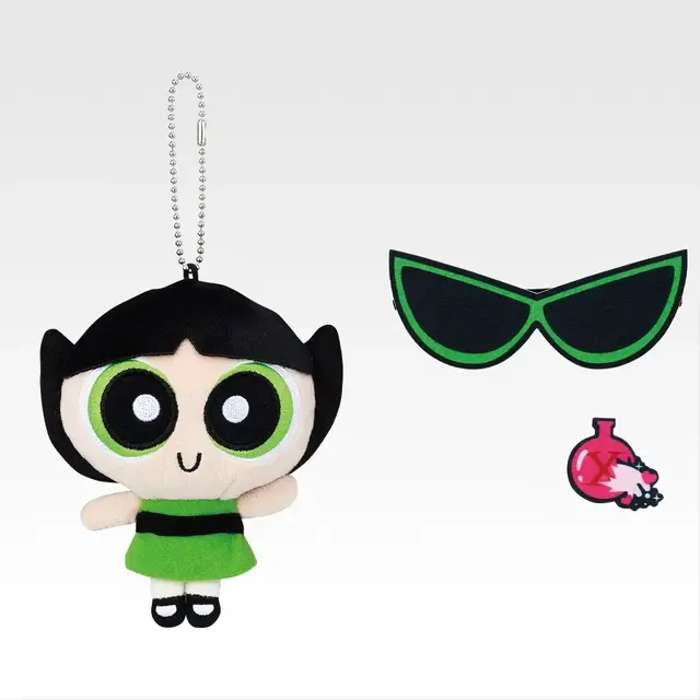 B~D賞はガールズたちのぬいぐるみマスコット。アレンジできるパーツ付きで、サングラス姿にすることができます。E賞はポーチを開け閉めするたびにガールズたちがタウンズヴィルを飛び回るポーチを用意。