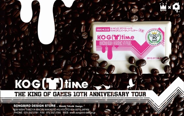 日本唯一の任天堂ライセンスTシャツを手がけるエディットモードは、KOG(T)time in SONGBIRD DESIGN STORE.-THE KING OF GAMES 10th ANNIVERSARYTOURを7月14日より開催すると発表しました。