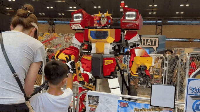 勇者技術研究所制作による巨大ロボット「ファイバリオン」を、バーチャルでの遠隔操作とリアルの両方で楽しめる体験型展示も展開しました。来場者は自分の動きでロボットの腕を操作し、その手応えと演出に圧倒されました。「自分がパイロットになれた気分」「技術のデザイン性が未来的」といった体験型テック体験として来場者から高い評価を受けました。