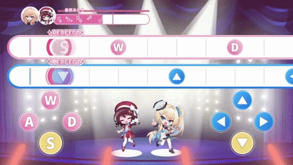 タイミングよくボタンを押し、一定以上のスコアを達成するとライブクリア!