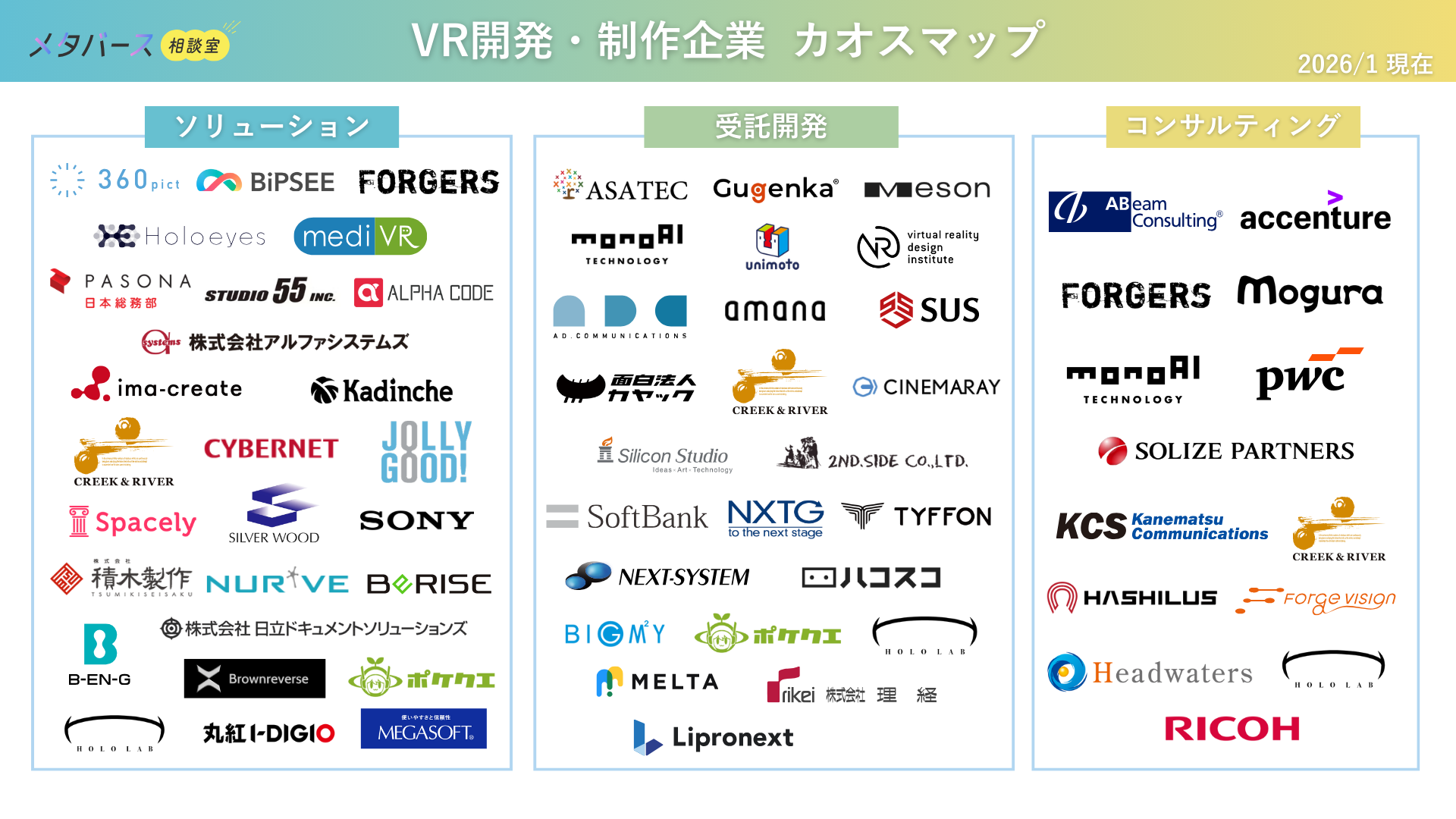 monoAI technology株式会社(本社:東京都渋谷区、代表取締役社長:山下 真輝、東証グロース市場:証券コード5240、以下「当社」)は、2026年1月現在の国内主要プレイヤーをまとめた『VR開発・制作企業 カオスマップ 2026』を公開しました。
