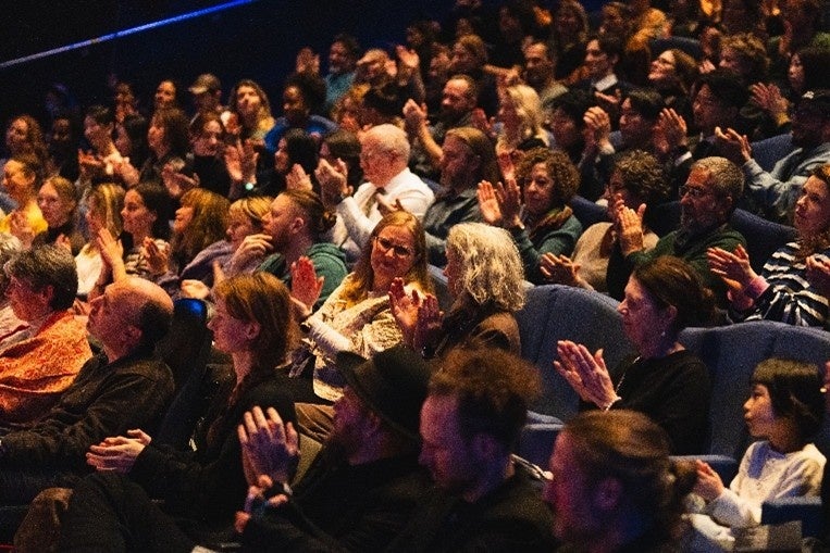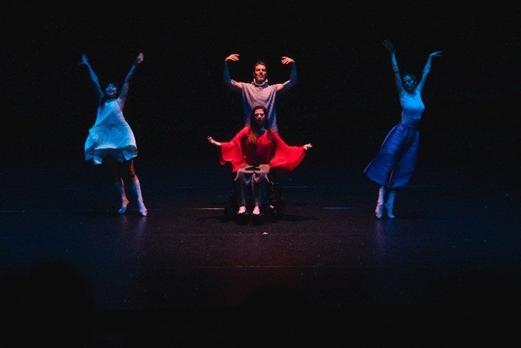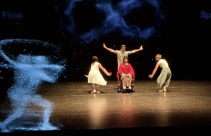 第2幕、第3幕では、幼少期よりダンスを共にしてきた兄のケイシーさんらと共に、まだ身体の動く機能をすべて使って、身体的なダンスを披露しました。ブレアナさんが創り出した動きが風となり、雲や霧を晴らし、蝶や鳥などの生き物たちが近づき、色鮮やかで美しいエネルギーが波のように形を変えながら広がる世界に包み込まれました。パフォーマンスが終わると、会場の観客が立ち上がり、拍手と歓声が巻き起こりました。