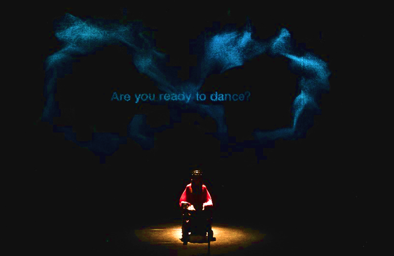 マックス・リヒターの音楽と共に、車いすに乗ったブレアナさんが登場してパフォーマンスがスタート。第1幕では、脳波の波が作り出すビジュアルの後に、ブレアナさんの「意思の選択」を表したinfinityマークが映し出されます。ブレアナさんが今表現したい動きを脳波によって選択すると、ブレアナさんを表現したアバターがダンスを披露。ブレアナさんは、音や映像に合わせてその場でアバターの動作を選択することで、リアルタイムに唯一無二の作品を創り出します。