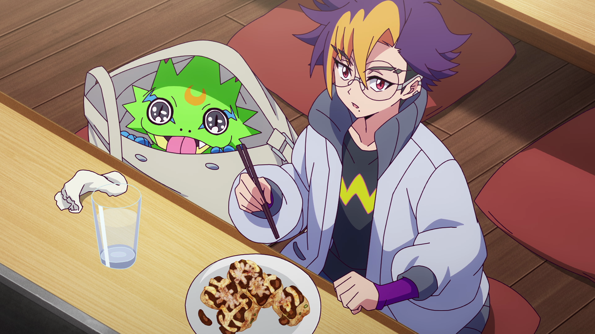 コエモンを追跡中にタクティクスと対立したグローイングドーン。偶然居合わせたホタルコの弟妹がマコトを同僚と勘違いし、実家のお好み焼き屋に招待する。食事中、ホタルコは彼らを敵視するが、町では食料の盗難が頻発していて……。