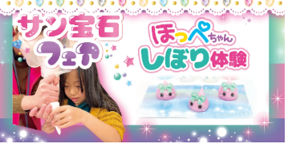 サン宝石の人気キャラクター「ほっぺちゃん」を手作りできるワークショップを開催いたします。「じぶんだけ」のほっぺちゃんをしぼって、デコアイテムで飾り付け♪