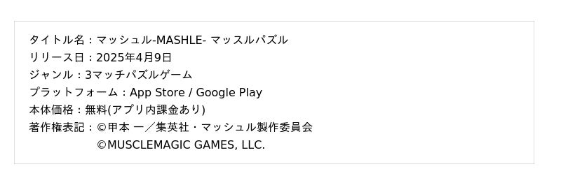 ポッピンゲームズジャパン株式会社(本社:東京都港区、代表取締役 CEO:谷口祐一郎)と合同会社MuscleMagic Gamesが開発・運営するアニメ『マッシュル-MASHLE-』初のスマートフォン向けゲームアプリ『マッシュル-MASHLE-マッスルパズル』(略称:マシュパズ)では2026年3月4日(水)より『イーストン学園祭 累計スコアランキング フィンとの対決』を開催しました。また、同日より『イーストン学園祭 ピックアップガチャ マッシュ・フィン・ドット』を開催しております。さらに2026年3月7日(土)より『復刻 エンジョイサマー ピックアップガチャ 第1弾』の開催を予定しております。