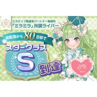 ミラティブ"プラチナ"パートナー事務所「ミラミラ」所属ライバー「よう」初配信より80日目でスタークラスS到達!