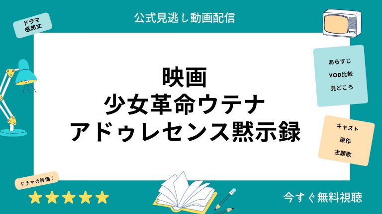 この記事では劇場版(映画)「少女革命ウテナ アドゥレセンス黙示録」の配信動画が無料でフル視聴できるお得に見ることができる動画配信サイトや無料動画サイトを調査し、まとめました。
