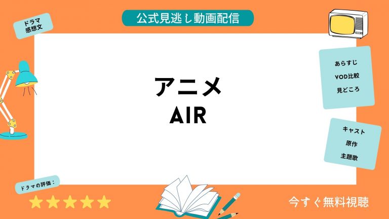この記事ではアニメ「AIR(エアー)」の動画が全話無料でお得に見ることができる動画配信サイトや無料動画サイトを調査し、まとめました。